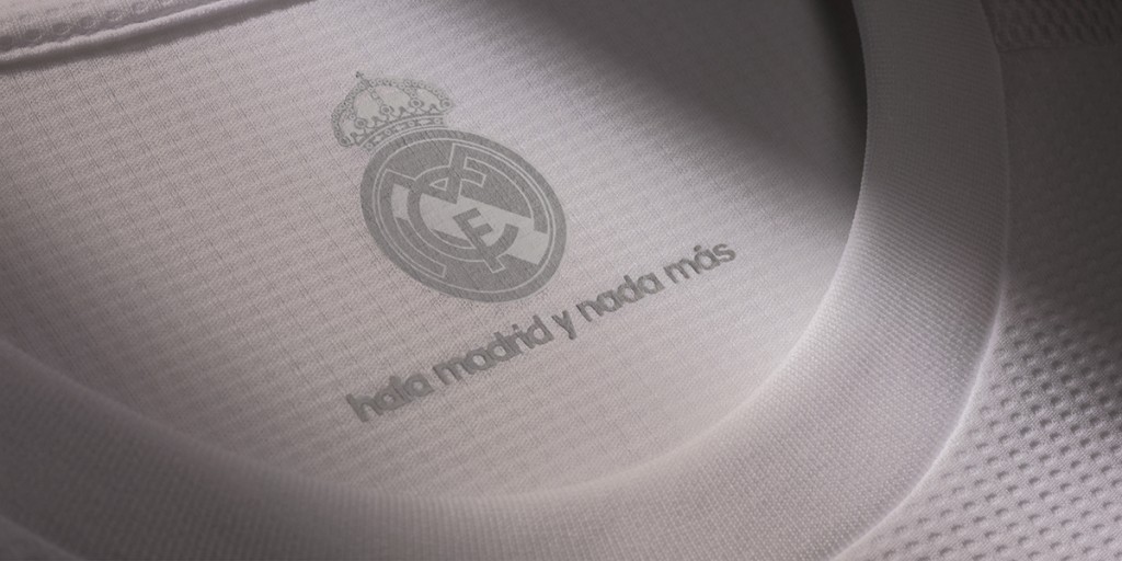 Il design vede l’innovazione di un doppio effetto manica (come già visto sulle divise delle nazionali Adidas), prodotto con un materiale diverso per conferire un tocco di classe ulteriore alla maglia, e la permanenza del girocollo, all’interno del quale troviamo lo stemma del club, accompagnato dalla scritta “hala madrid y nada más”.