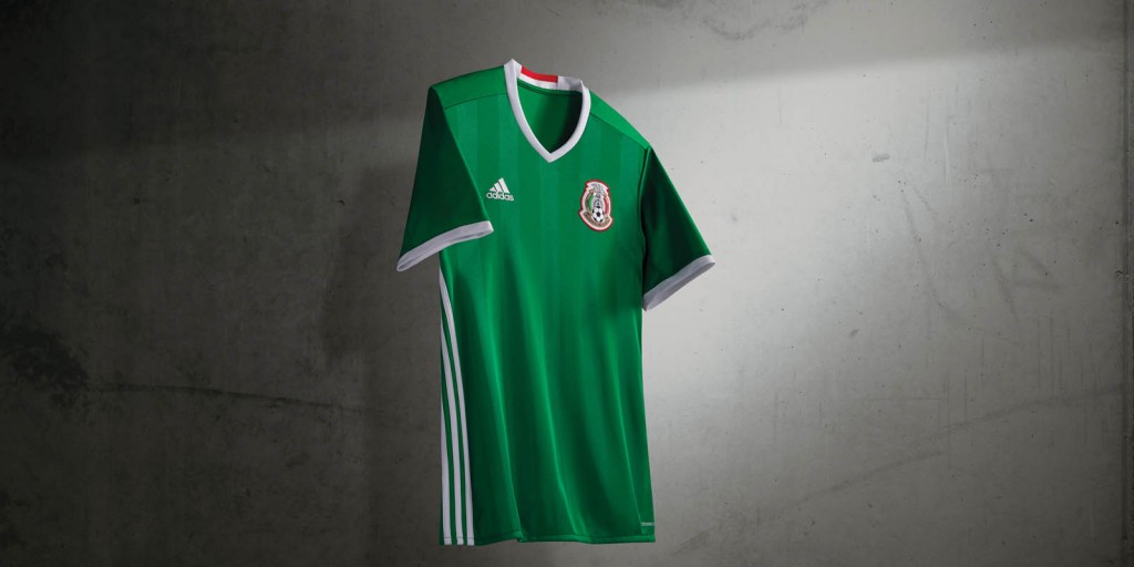 MESSICO (Adidas). Ritorno al verde per il Messico, che accantona la casacca nera usata nell’edizione dell’anno scorso, e ripropone il suo colore classico. Template molto tradizionale firmato Adidas, con scollo a V bianco e motivo a righe verticali tono su tono molto anni 70 sul petto. Le tre strisce del brand tedesco sono sotto le maniche, mentre sulla parte posteriore, appena sotto il colletto, campeggia la scritta México. Pantaloncini bianchi, calzettoni – ovviamente – rossi – con dettagli bianchi e verdi nella parte superiore. Il completo away è lo stesso bianco usato nella passata edizione.