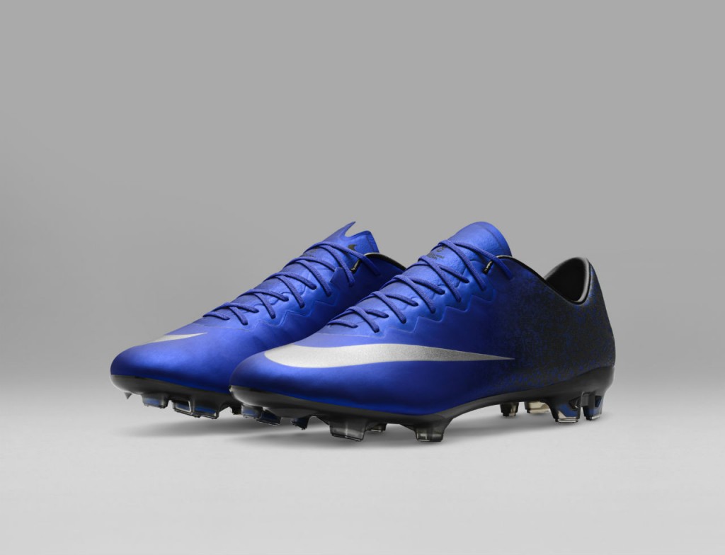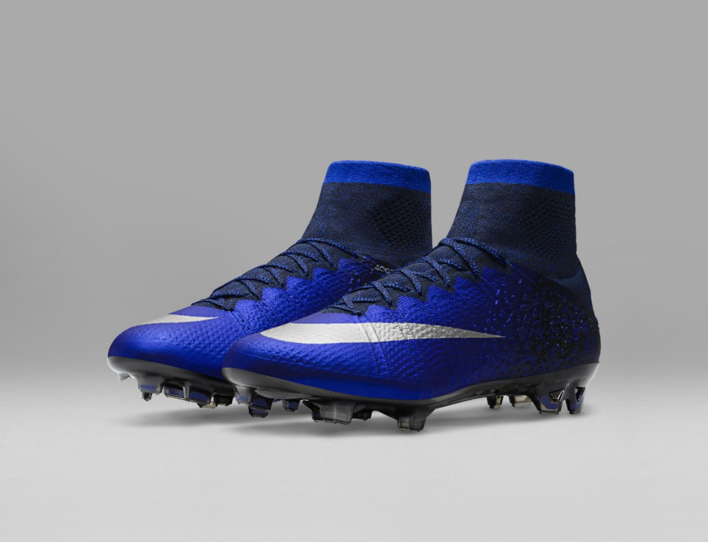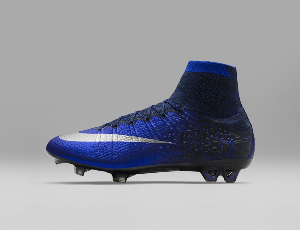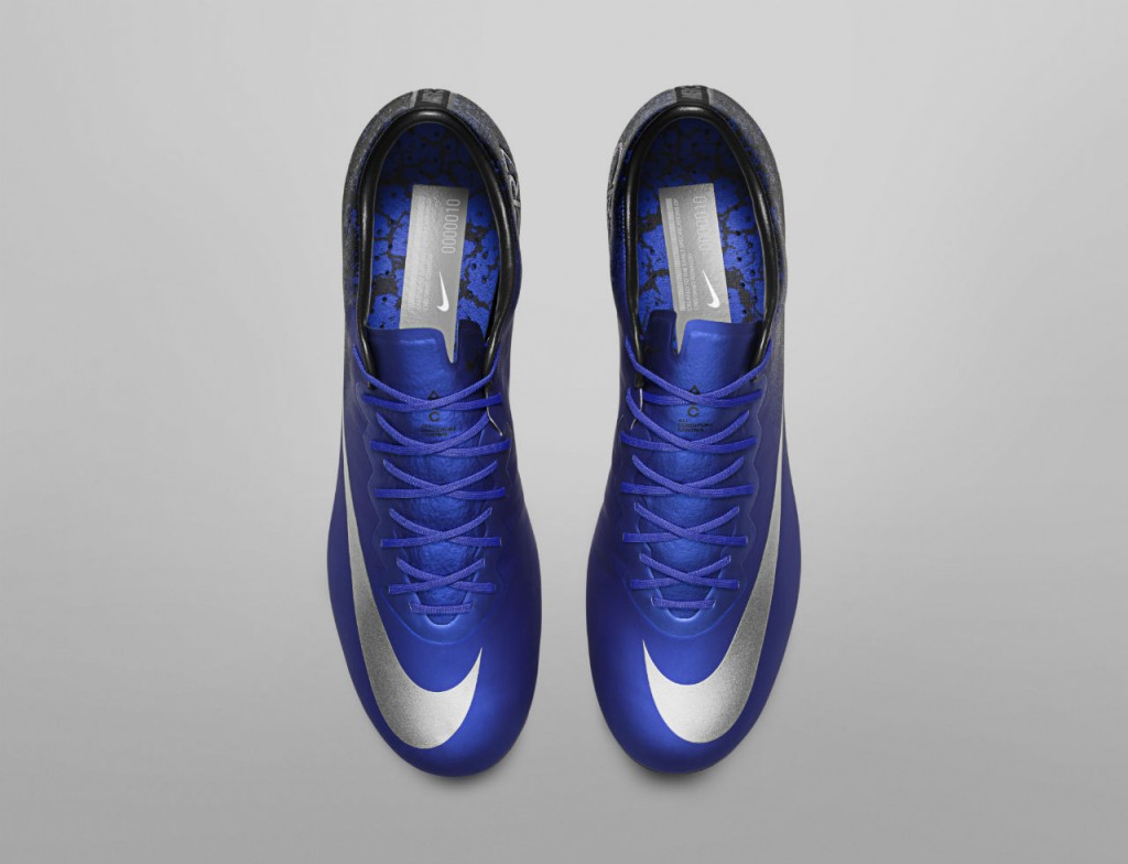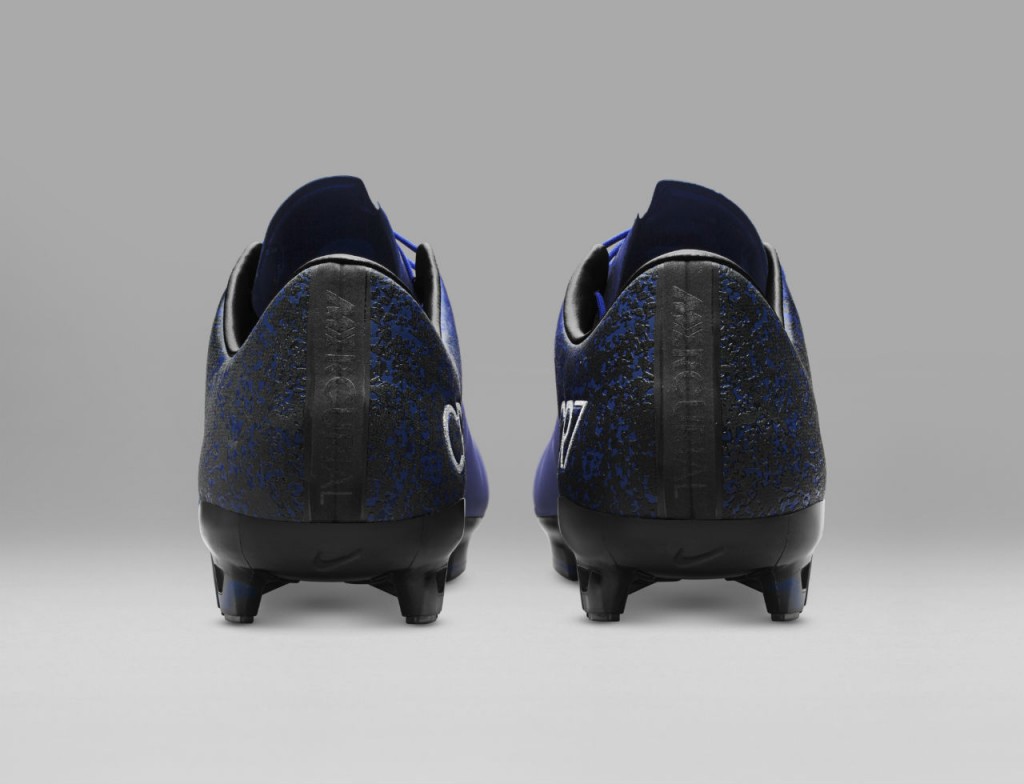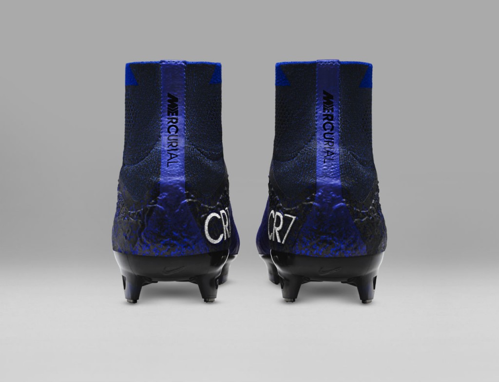 La base delle Nike Natural Diamond di Cristiano Ronaldo è, naturalmente, la sua amata Mercurial Superfly IV con Dynamic Fit Collar. Il colore di base e il blu, che va a sfumare verso il retro della scarpa e sul collo alto in tonalità più scure, con Swoosh e logo CR7 argento. Per la prima volta, Nike ha texturizzato il tacco della scarpa, in modo da dargli un’apparenza simile alla roccia, proprio a rappresentare con le Nike Natural Diamond quegli anni così duri per il piccolo Cristiano.