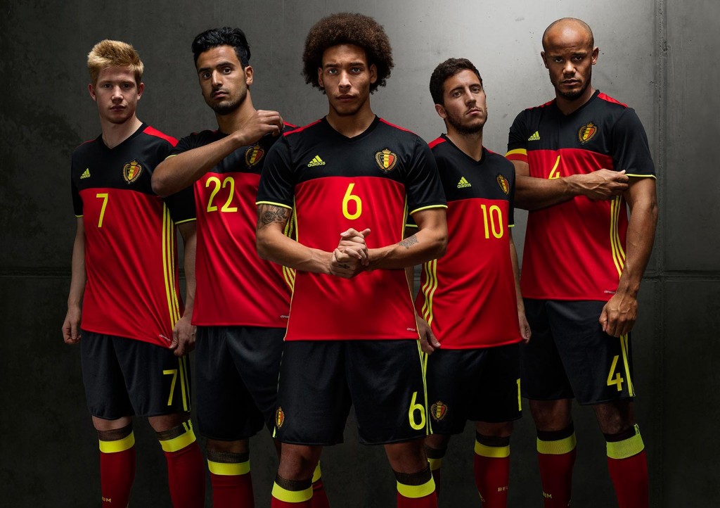 BELGIO (ADIDAS). Tornano i Diavoli Rossi e lo fanno in grande stile dopo l’ultima apparizione continentale nell’estate del 2000. Le nuove maglie realizzate da Adidas prendono ispirazione dalla bandiera nazionale belga in entrambe le colorazioni. La divisa home è principalmente rossa, con petto e spalle neri, mentre il giallo è il colore scelto per le 3 strisce Adidas, oltre che per il logo sul petto ed il nome e numero sulla schiena. La particolarissima casacca da trasferta è azzurrina, con la bandiera nazionale che fascia orizzontalmente il busto dei giocatori. Il design scelto per questa divisa non è una casualità, ma un volontario omaggio alla nazionale di ciclismo.