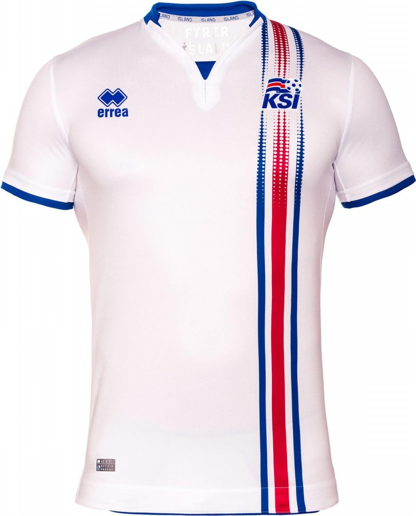 ISLANDA (ERREA). E’ l’italiana Errea il produttore delle divise ufficiali della nazionale Islandese, vera e propria cenerentola di Euro 2016. Nonostante la collaborazione duri ormai da 12 anni (dal 2004), questa sarà la prima presenza ai campionati europei per entrambe le compagini. Basate sui colori nazionali, blu rosso e bianco, le divise dell’Islanda sono realizzate tramite lo stesso design, povere di dettagli, ma ricche di personalità. La maglia home è blu acceso, con una fascia verticale rossa e bianche a dissolvenza quando incontra il logo della Federazione. Il colletto è leggermente a V ed all’interno compare la scritta “Fyrir Island” (“Per l’Islanda”). La maglia da trasferta mantiene le stesse caratteristiche, ma il bianco si inverte con il colore blu. Dietro il colletto delle due casacche è stata ricamata la bandiera nazionale. [A cura di @fraquarti e @orangeket]