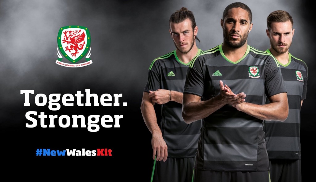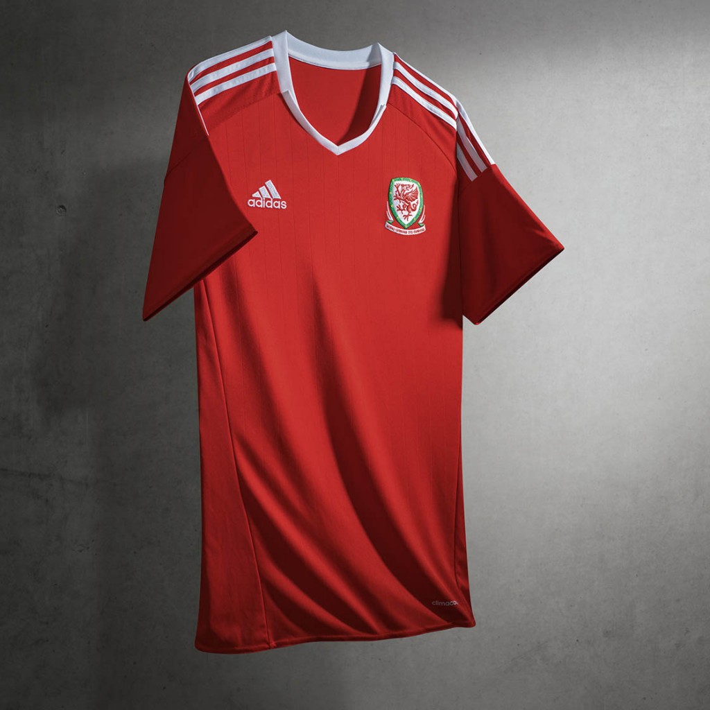 GALLES (ADIDAS) – Ritorno al tradizionale per Adidas e Galles dopo la sperimentazione bianco-rossa degli anni passati. Saranno infatti il rosso e il verde i colori con i quali la nazionale gallese si presenterà a Euro 2016. Il modello di maglia utilizzato è uno dei più conosciuti del brand tedesco, con girocollo e orlo delle maniche puntinati. Il busto rosso è decorato da pinstripes verdi su entrambi i lati e le linee Adidas verdi si interrompono lasciando spazio alle patch di competizione. La seconda casacca è invece molto “elegante”, nera e grigia a fasce larghe orizzontali, decorata dal verde fluo sulle spalle e il collo a V. Su entrambe le divise i pantaloncini riprendono il colore principale, rosso per il kit home, nero per quello away.