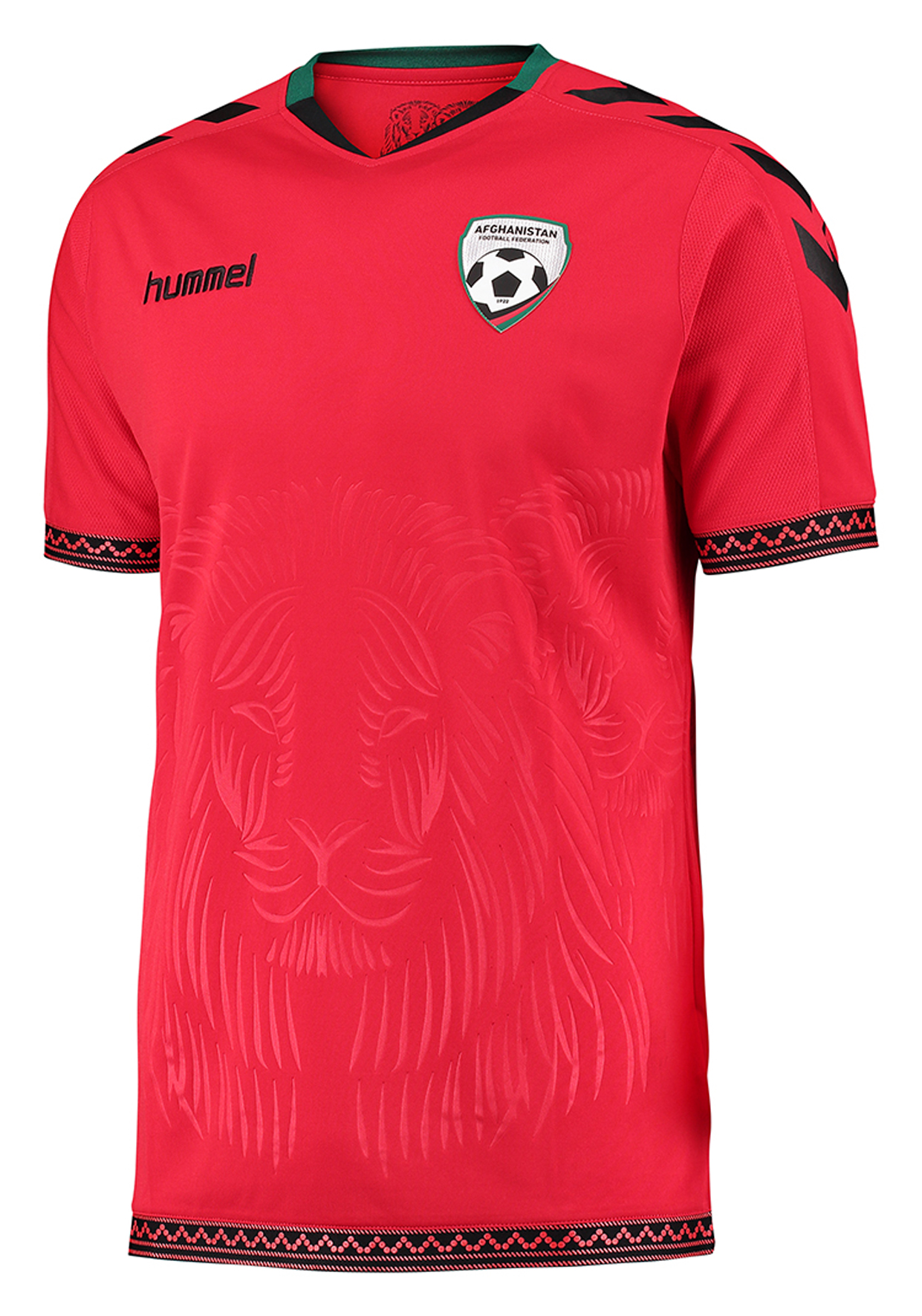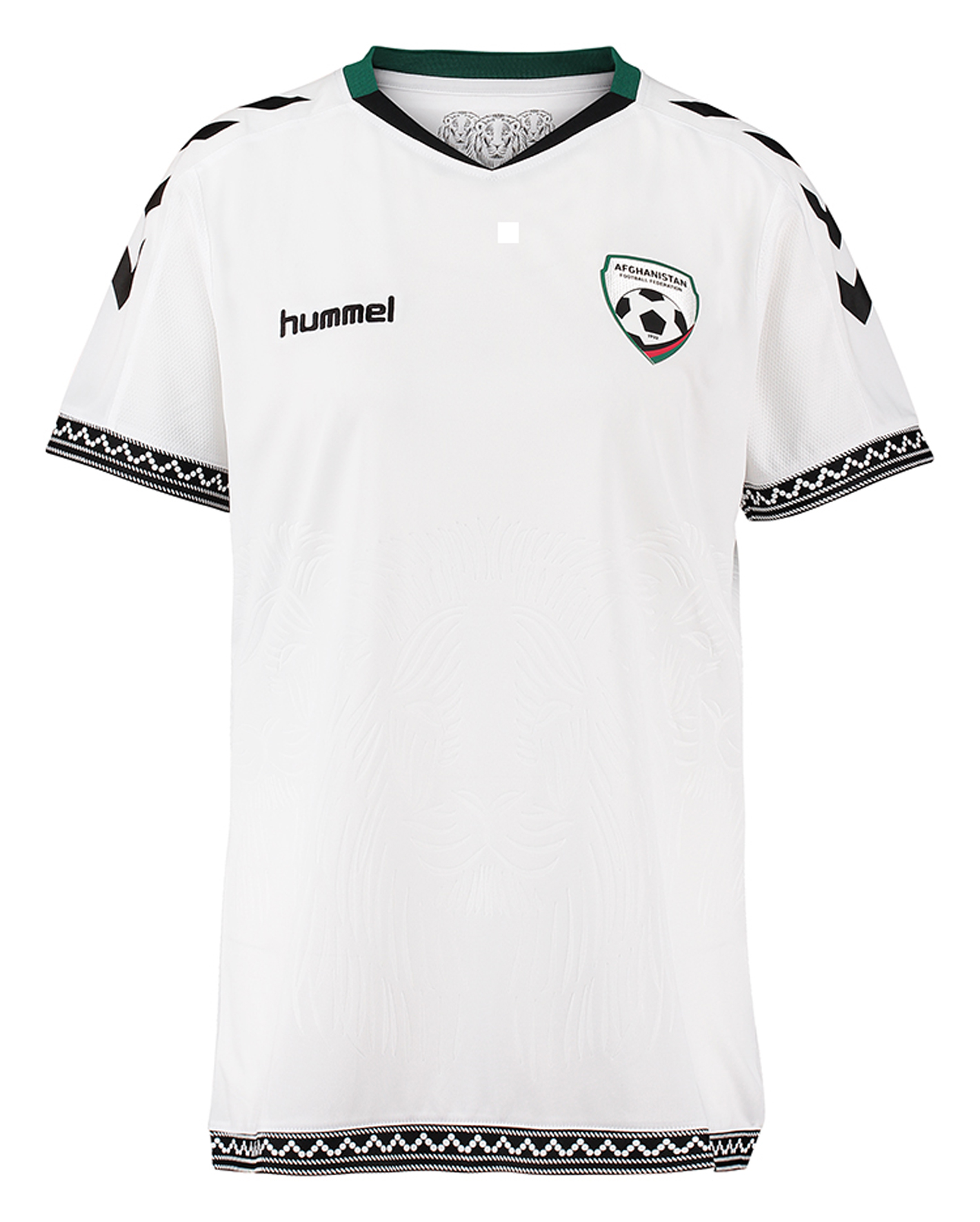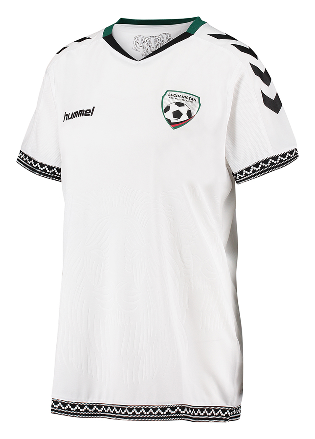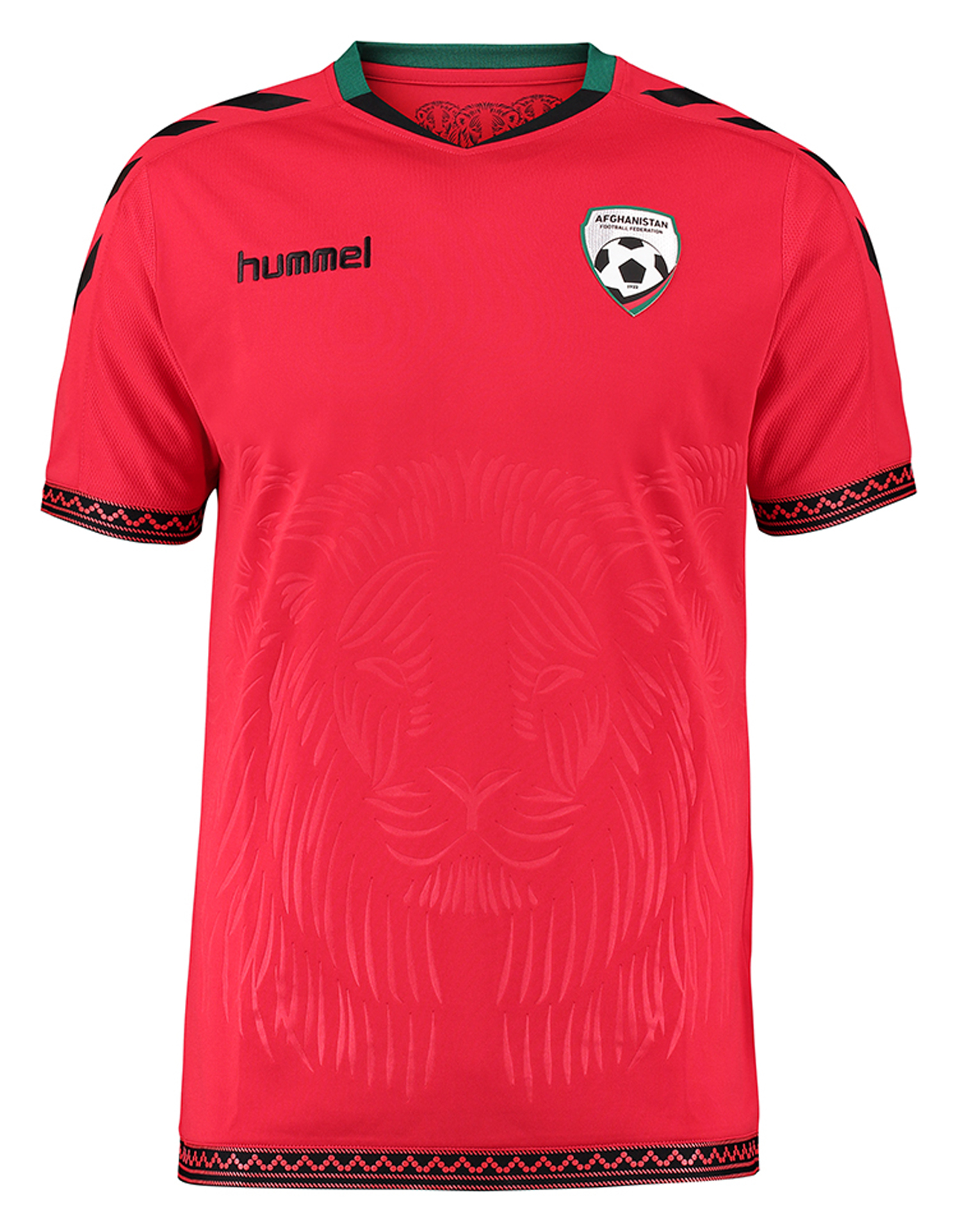 Le maglie presentate sono in realtà due: la prima (rossa) e quella away (bianca). I completi saranno usati anche dalla squadra maschile, ovviamente senza hijab e leggings. La divisa di casa è rossa, con uno scollo a v poco pronunciato ma molto squadrato sul quale ritroviamo gli altri due colori della bandiera nazionale: il nero e il verde. I dettagli principali sono in nero; spiccano il motivo geometrico che si ripete sul bordo inferiore e su quelli delle maniche e i classici galloni Hummel sulle spalle. Sulla trama della parte anteriore e di quella posteriore – inoltre – compare (sul tessuto) il profilo di un leone, simbolo e nickname delle squadre nazionali afghane. Tre leoni sono stampati anche, in nero, sulla parte interna del colletto, mentre su quella posteriore compare l’anno di fondazione della federazione: 1922. Lo stemma federale si trova sulla parte sinistra del petto, il logo Hummel a destra. L’hijab non è niente di più che un pratico e moderno sottomaglia, indossato dalle ragazze proprio come una qualunque maglia termica, della stessa tonalità di rosso della divisa e impreziosito da un motivo geometrico regolare. Stessi dettagli, in tutto e per tutto, per la divisa da trasferta, realizzata in bianco e nero.