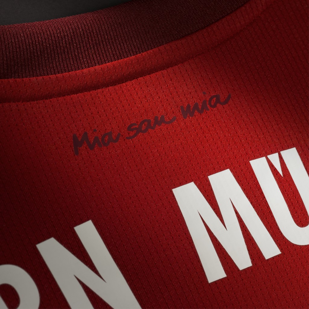 Non mancano le concessioni allo stile. Ancora una volta marchiato sulla pelle c’è il motto della società bavarese “Mia san mia” (“siamo ciò che siamo”) dietro al collo; così come sull’orlo della maglietta, dove il rosso diventa più scuro, ruba l’occhio la presenza di una fantasia a diamanti: disegnata da Adidas per rappresentare i milioni di tifosi che il Bayern Monaco può vantare in giro per il mondo.