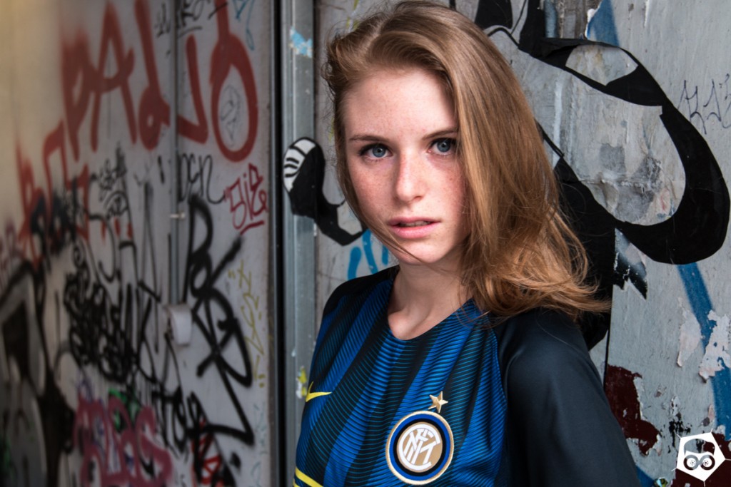 La tradizione, con inserti… biondi! Abbiamo scelto la nostra Marghe per celebrare il fascino nobile della maglia dell’Inter per la stagione 2016/2017.