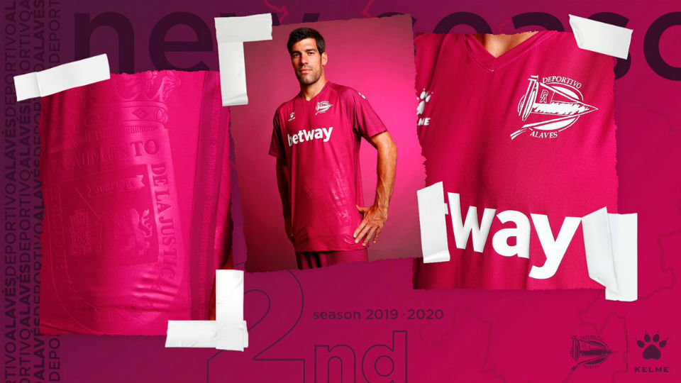 La seconda maglia è rosa con maniche raglan e un moderno scollo a V. Il logo Kelme è bianco è sul pettorale destro mentre il simbolo del club è su quello sinistro, sempre in bianco. Ad abbellire la divisa, in basso a sinistra, c’è una sottile filigrana con rappresentato il motto del club.