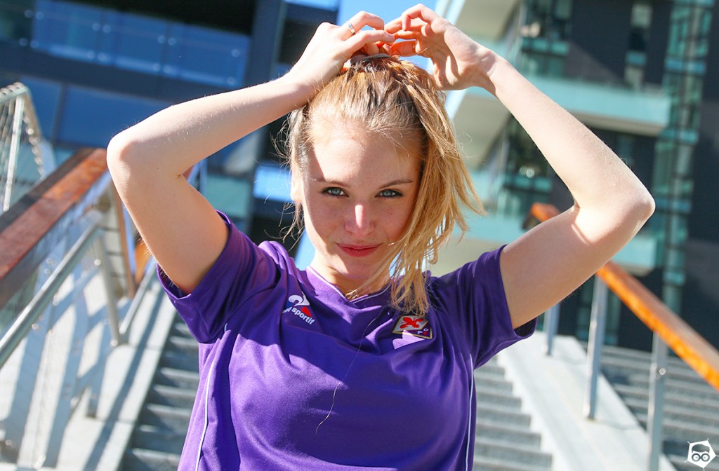 È la novità del campionato di Serie A in termini di sponsor tecnico. Le Coq Sportif è tornata quest’anno sul petto della Fiorentina portando sui campi della massima serie italiana una dose di eleganza senza eguali. Abbiamo deciso di celebrare questa ventata di classe facendo qualche scatto a Marghe in viola!