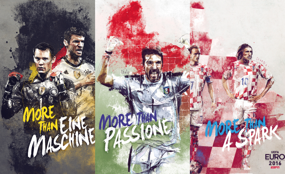 Così è nata la serie More than…, che accoppia al filo conduttore una parola o un concetto che identifica la nazionale ritratta nel disegno. Ad esempio, il Portogallo di CR7 è More than Iconic, il Galles di Bale More than a heart, la Croazia della coppia Rakitic-Modic More than a spark, più di una scintilla. E la nostra Italia? Ovviamente è rappresentata da capitan Buffon e lo slogan scelto è More than passione. Un po’ come si è visto nella gara inaugurale contro il Belgio!