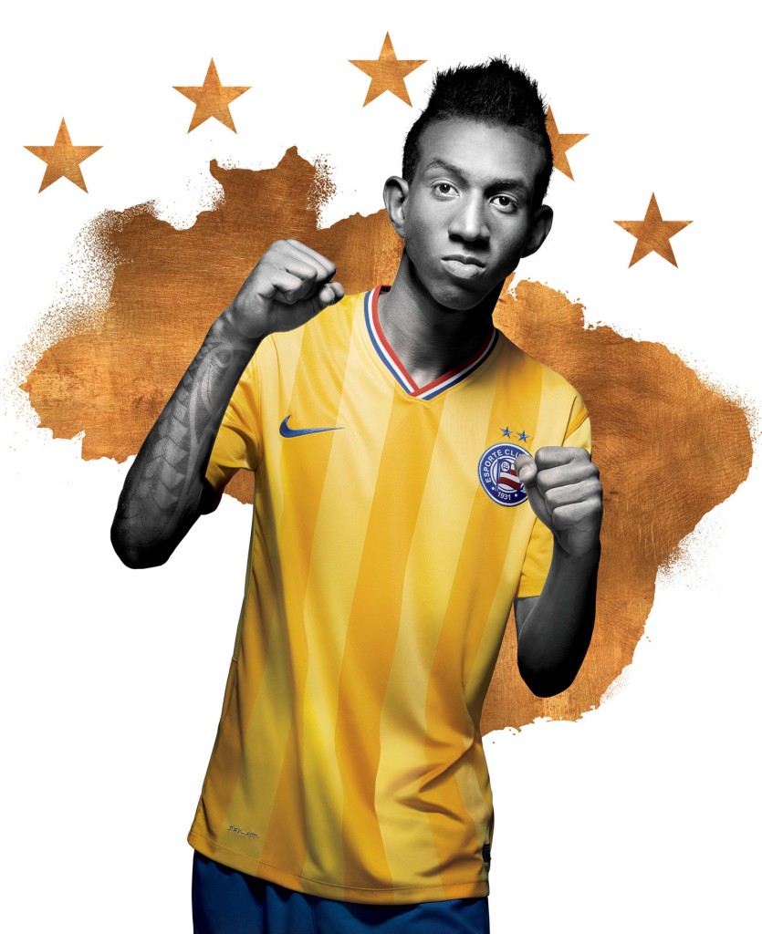 La Nike – per celebrare questo 2014 che si annuncia adrenalinico- ha deciso di produrre un’edizione speciale di terze maglie per alcuni dei principali club brasileros: Corinthians, Santos, Intenacional Porto Alegre, EC Bahia e Coritiba. Cosa le accomuna? Il colore – giallo, naturalmente – e la scritta all’interno del collo: Nascido para jogar futebol, la stessa che da alcuni anni compare sui prodotti della Seleção.