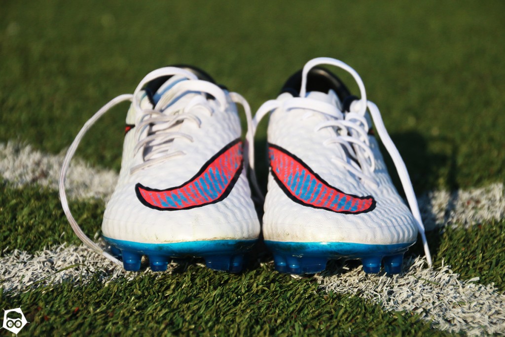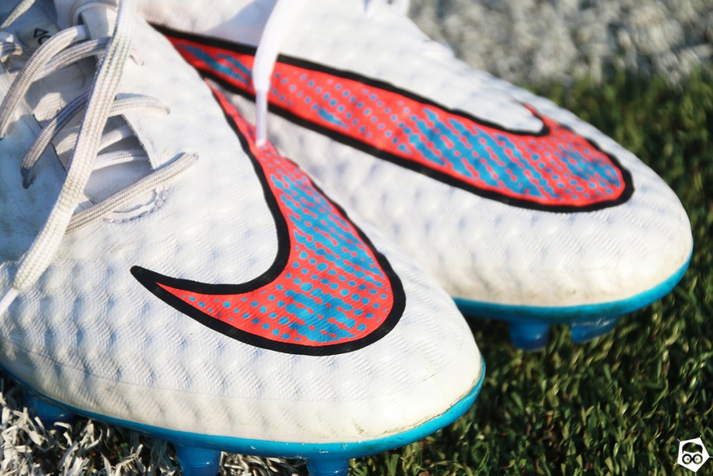Primo impatto. Estremamente seducente, si fa notare per la tomaia a nido d’ape in morbido materiale sintetico Nikeskin caratterizzata da due grossi Swoosh Nike che finiscono di fatto per avvolgere il piede con colorazioni (ne sono state proposte sei solo negli ultimi sei mesi) che non mancano di farsi notare, ma con gusto. Le Nike Hypervenom sono belle da vedere e da toccare e, soprattutto, si capisce subito maneggiandole o calzandole che sono delle top di gamma.