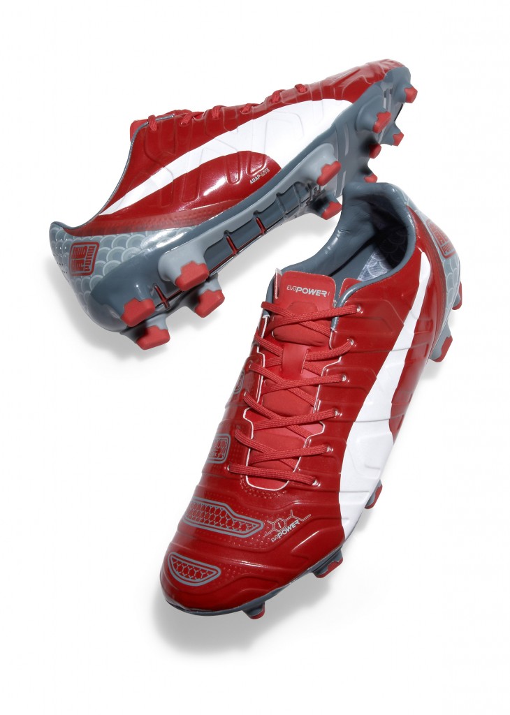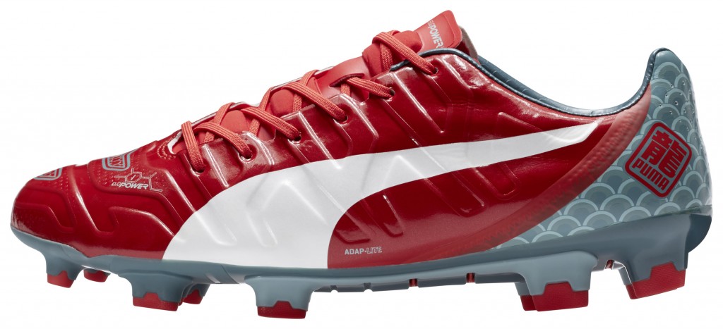 I colori di questa nuova evoPOWER 1.2 richiamano il famoso drago giapponese; da sempre simbolo di velocità, potenza, saggezza e agilità, insomma l’insieme di tutte quelle qualità tecniche che Puma si è prefissata di esaltare sin dalla fase di progettazione del modello POWER. La riproduzione della creatura mitologica è stata resa attraverso il Formstripe bianco in contrasto con il rosso acceso della tomaia e l’inserimento di una tanto speciale quanto inedita stampa grafica, a effetto “pelle di drago”, che ricopre interamente il tallone donandole un tocco unico