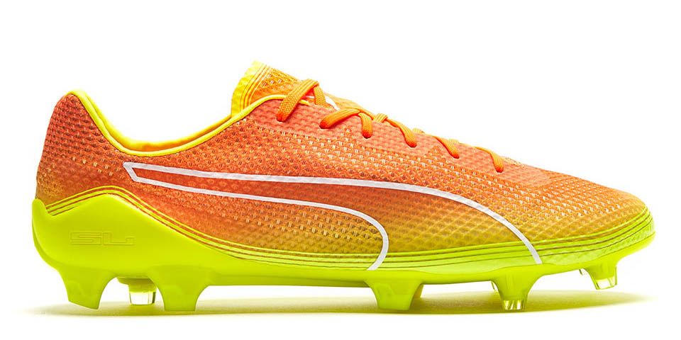 Puma dà un’altra rinfrescata alla evoSPEED Fresh con due nuove colorazioni per il mese bollente in cui si concludono le ultime trattative e si incendia la lotta per i titoli nazionali con l’inizio dei campionati. Per sottolineare il calore della passione e della tensione che torna a scuotere gli animi dei tifosi e dei giocatori il brand tedesco ha scelto tinte calde per questo silos estivo. Una versione presenta infatti una suola rosso fuoco abbinata a una tomaia blu navy, mentre l’altra si caratterizza per una suola giallo evidenziatore che sfuma in arancio. Entrambi i baffi Puma hanno contorno bianco mentre l’interno delle scarpe riprende il colore dellla suola.