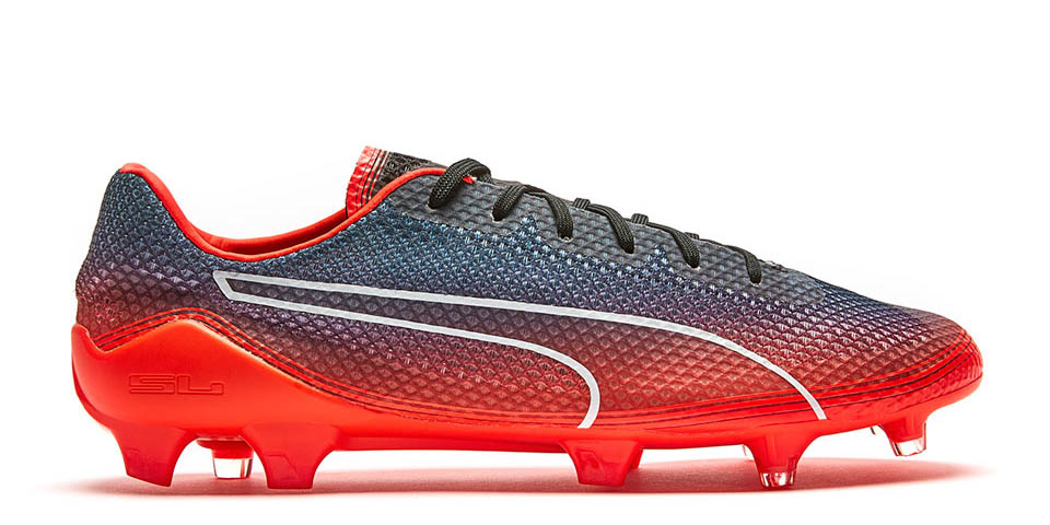 Per il resto, questa scarpa (comunque molto leggera, parliamo di 125 grammi appena) riprende le caratteristiche tecniche delle Puma evoSPEED SL (qui il nostro test). A livello di struttura la tecnologia utilizzata è la Speedframe, che crea una struttura in grado di attutire l’impatto con il terreno e favorire i repentini cambi di direzione. Per la suola Puma ha scelto una speciale combinazione tra il nylon dual density, l’inserto Speedtrack e una spina rialzata per sostenere la torsione durante i dribbling. Due le tipologie di tacchetti: cinque conici situati nella parte anteriore e mediale per aiutare il giocatore durante gli scatti, cinque lamellari per una maggiore aderenza.