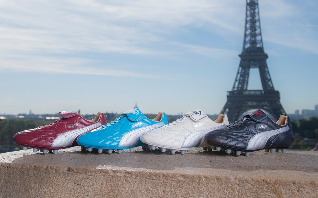 Puma ha deciso di onorare come si deve questo Euro 2016 e lo ha fatto non solo con una colorazione (quella Tricks, di cui abbiamo visto la presentazione a Londra) difficilmente dimenticabile delle sue scarpe di punta o con delle maglie fra le più belle del lotto, ma anche con una serie di edizioni limitate heritage che celebrano l’appuntamento francese. La prima è la Puma King Top Stripe vista a febbraio, con tre colori ispirati alla bandiera nazionale francese, finiture “alla marinara” e dettagli recanti le date-chiave di questo Europeo.