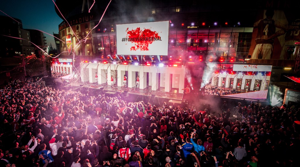 Lo skyline di Ashburton Grove, a nord di Londra, splendeva di rosso, e i migliaia di fans presenti alla serata (Powered by Fans era anche il claim scelto da Puma per la campagna di lancio) divisi in due settori, ispirati alle due mitiche curve Clock End e North Bank – hanno mostrato tutta la loro passione per la squadra, cantando fino al termine del countdown timer visibile sul megaschermo. Il tutto alla presenza di due vere leggende come Thierry Henry, uno dei migliori calciatori al mondo, simbolo dei Gunners degli anni 2000, e Gilles Peterson, Dj e label manager francese.