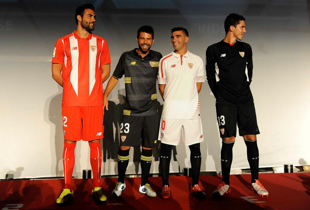 I campioni in carica dell’Europa League scenderanno in campo per la temporada 2015/16 con le nuove divise firmate New Balance. La prima maglia sarà come di consueto blanca, con il marchio NB rosso, colore ripreso anche per la linea che segue la manica destra, l’interno del colletto e le strisce orizzontali molto fini in fondo alle maniche e sulla parte posteriore della casacca. La seconda maglia è principalmente rossa, con due strisce verticali bianche sulla parte anteriore. Infine la terza divisa è di colore nero, a strisce orizzontali grigie e gialle, che creano un effetto molto particolare. Tutte e tre le maglie hanno in comune il colletto a polo e il logo del Siviglia, in versione tradizionale, sulla parte superiore della schiena.