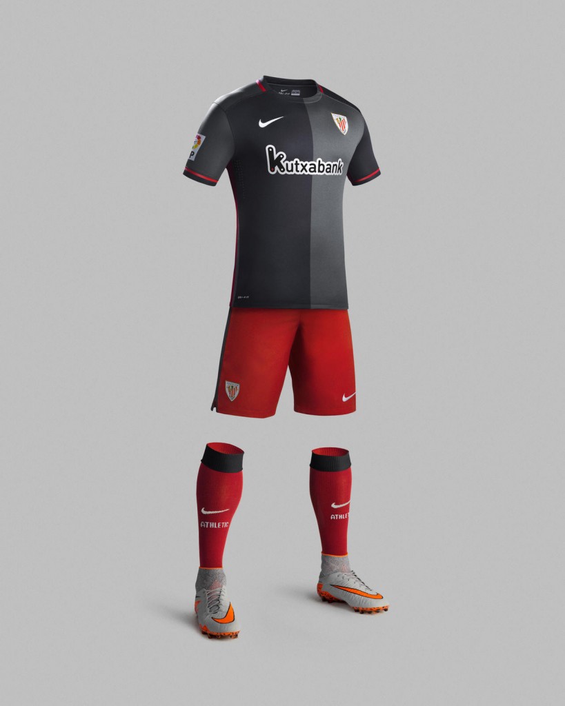 Non perde mai il fascino della tradizione la maglia dell’Athtletic Bilbao, anche quest’anno Nike. Per la prossima stagione le strisce verticali biancorosse sono più larghe, il colletto di colore nero, chiuso da due bottoni coperti nella parte frontale e le maniche sono interamente rosse. La novità principale è il cambio di sponsor sulla maglia (Kutxabank), un dettaglio che non può rimanere inosservato, dato che per 110 anni (1898-2008) la maglia dei Leones è rimasta immacolata, senza scritte. Seconda divisa molto elegante, nera e grigio scuro divisa a quarti con dettagli rossi nella parte posteriore del colletto a girocollo e in fondo alle maniche. L’immancabile colore rosso è ripreso anche in tinta unita per i pantaloncini e per i calzettoni.