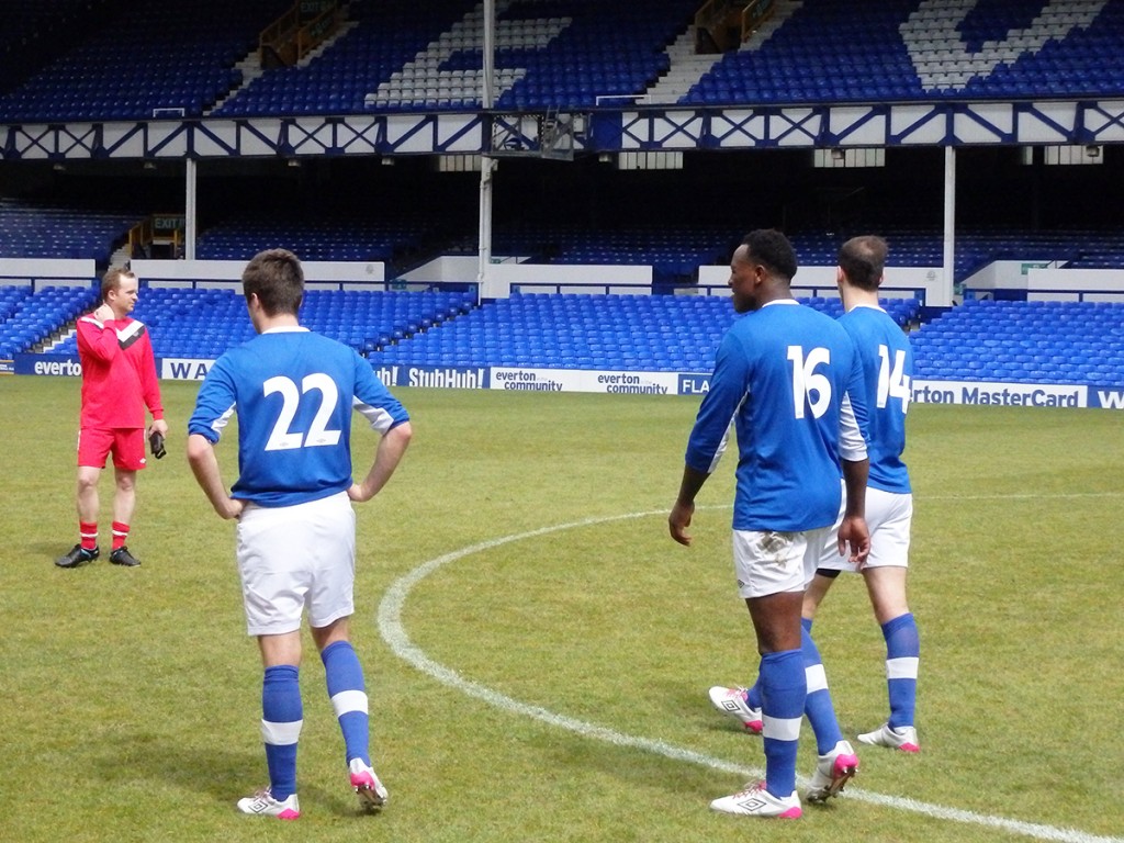 Questione di pochi minuti e il fischio del vento viene sostituito dal clima spogliatoio. Zip che si aprono, una maglia blu lì pronta ad aspettarti, un capitano che dice due parole ai suoi giocatori, il rumore dei tacchetti che sbatte sui gradini di pietra che portano al campo. Everton e Tottenham si sono dati battaglia nello stesso posto solo due giorni prima, ma oggi tocca a noi.